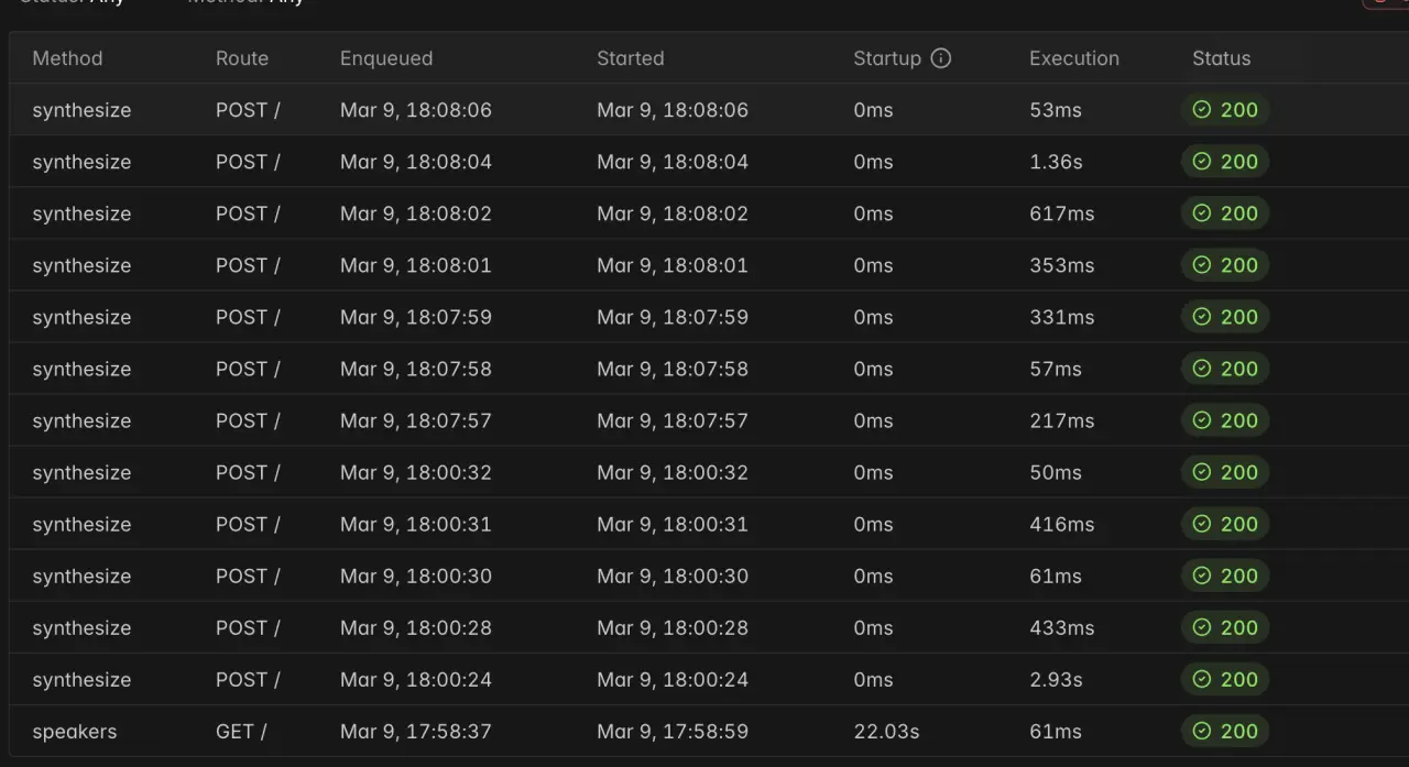 ホスティングはRunpod/Modal/HuggingFaceなどを比較検討した結果、Modalを採用しました。ModalはサーバレスのGPU環境で、無料枠でも使えます。GTCにもブース出展していた新しいベンチャーで、個人的にも注目しています。使ってるよと言ったら喜んでくれていました。コールドスタートや利用枠の問題がありましたが、裏側でウォームアップリクエストを投げたり、コンテナ起動を一定時間キープするようにしたり、静的な音声ファイルを混ぜたり、演出でごまかしたりとできるだけ対応しました。